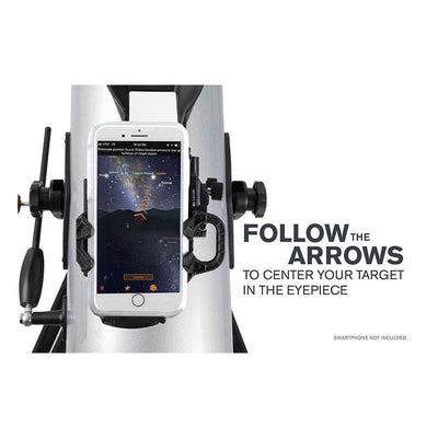Within minutes of setting up the telescope, you'll be navigating the sky with confidence. Simply place your phone in the unique StarSense dock and launch the StarSense Explorer app. After aligning your phone to the telescope's optics (a quick, 2-minute procedure), the StarSense Explorer app on your phone generates a list of celestial objects currently visible. Make your selection and arrows appear on-screen, guiding you as you to move the telescope. When the object is ready to view, the bullseye turns green.