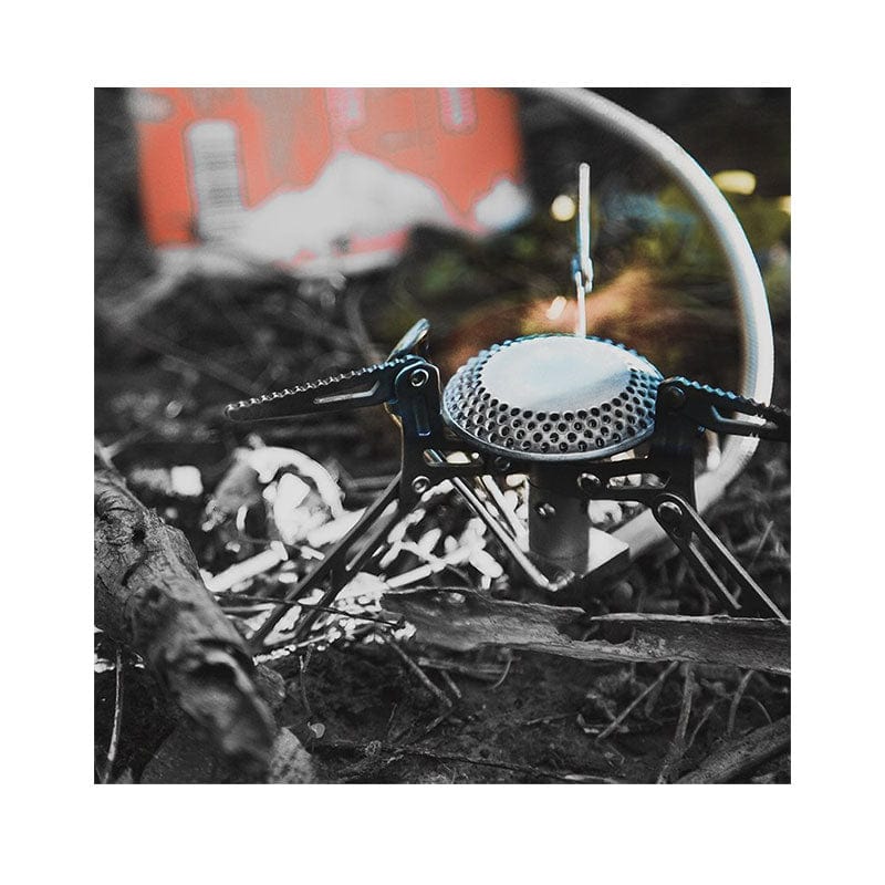 The folding titanium legs and the pot rests keep your Blade 2 gas burner stable and safe for all types of camp cooking. The jet burner operates at 2800 W and boils water in an instant!