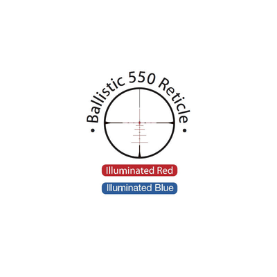 The KonusPro T30 3-12x44 houses Konus’s exclusive 550 ballistic reticle for precise shooting out to 550 yards. This unique reticle takes the guess work out of hold over angles for even the most difficult of shots and is guaranteed to exceed the expectations of performace-driven sportsmen and shooters. Lateral hash marks allow for precise leads of moving targets as well as compensating for strong crosswinds. The glass engraved ballistic reticle is unbreakable, and can be illuminated in blue or red for different lighting conditions. The fully multi-coated optics are clear and bright, while providing the shooter with long eye relief.