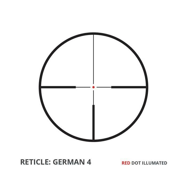 Precise windage and elevation adjustments offer reset capability and accuracy and the illuminated German #4 reticle makes for easy target acquisition in low light.